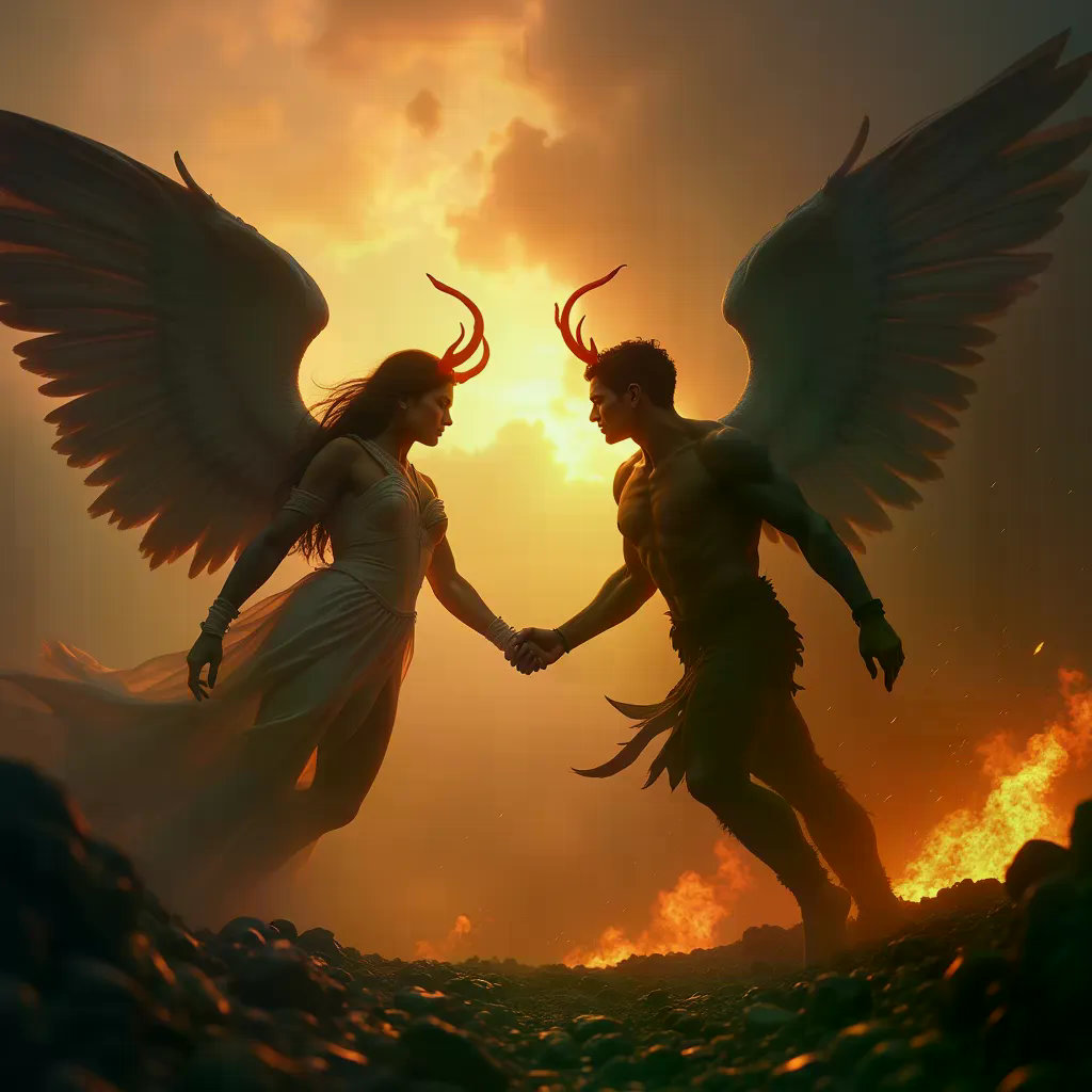 Obra de arte IA batalla entre el bien y el mal creada por alex123